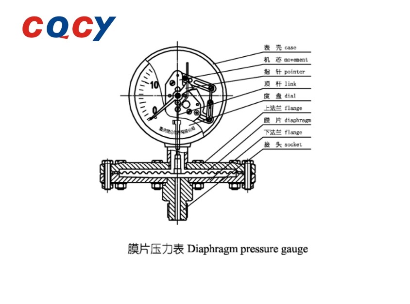 ส่วนเปลือกใช้โครงสร้างปิดปิดด้านหน้าที่ปลอดภัย และส่วนวัดใช้กล่องหนังกลมเป็นองค์ประกอบที่มีความรู้สึกยืดหยุ่น เต็มไปด้วยน้ํามันลดความแน่นต่ําเพื่อให้กลไกการวัดมีความสามารถในการทนต่อการสั่นสะเทือนของสภาพแวดล้อมการทํางานหรือการกระแทกแรงกดดันกลาง. เครื่องแยกแผ่นฉากสามารถแบ่งออกเป็นชนิด flanged, ประเภท threaded, ประเภทคลิม, ประเภทลูกหมากตามรูปแบบการเชื่อมต่อของมัน